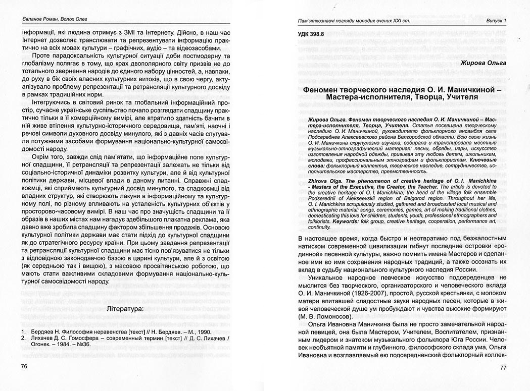 | Бібліографія: | Євланов Р. В., Волох О. Ю. Культурна спадщина: пріоритети соціальної репрезентативності. Пам'яткознавчі погляди молодих вчених XXI ст.: зб. наук. ст. Випуск I, Харків : Курсор, 2010. C. 73–76 |