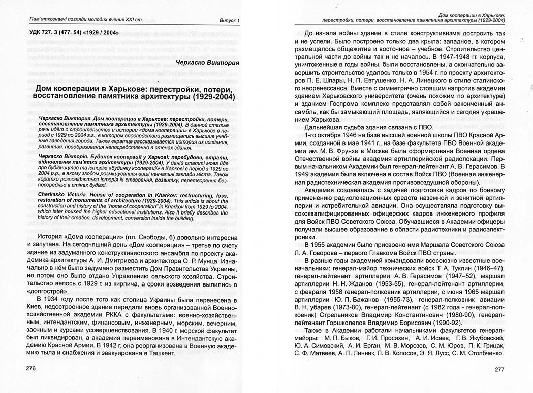 | Назва статті: | Дом кооперации в Харькове: перестройки, потери, восстановление памятника архитектуры (1929-2004) |