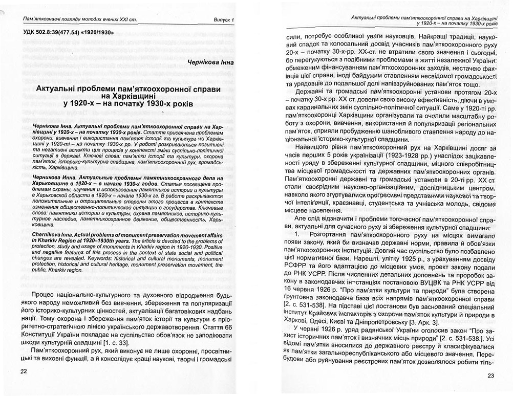 | Назва статті: | Актуальні проблеми пам'яткоохоронної справи на Харківщині у 1920-х - на початку 1930-х років |