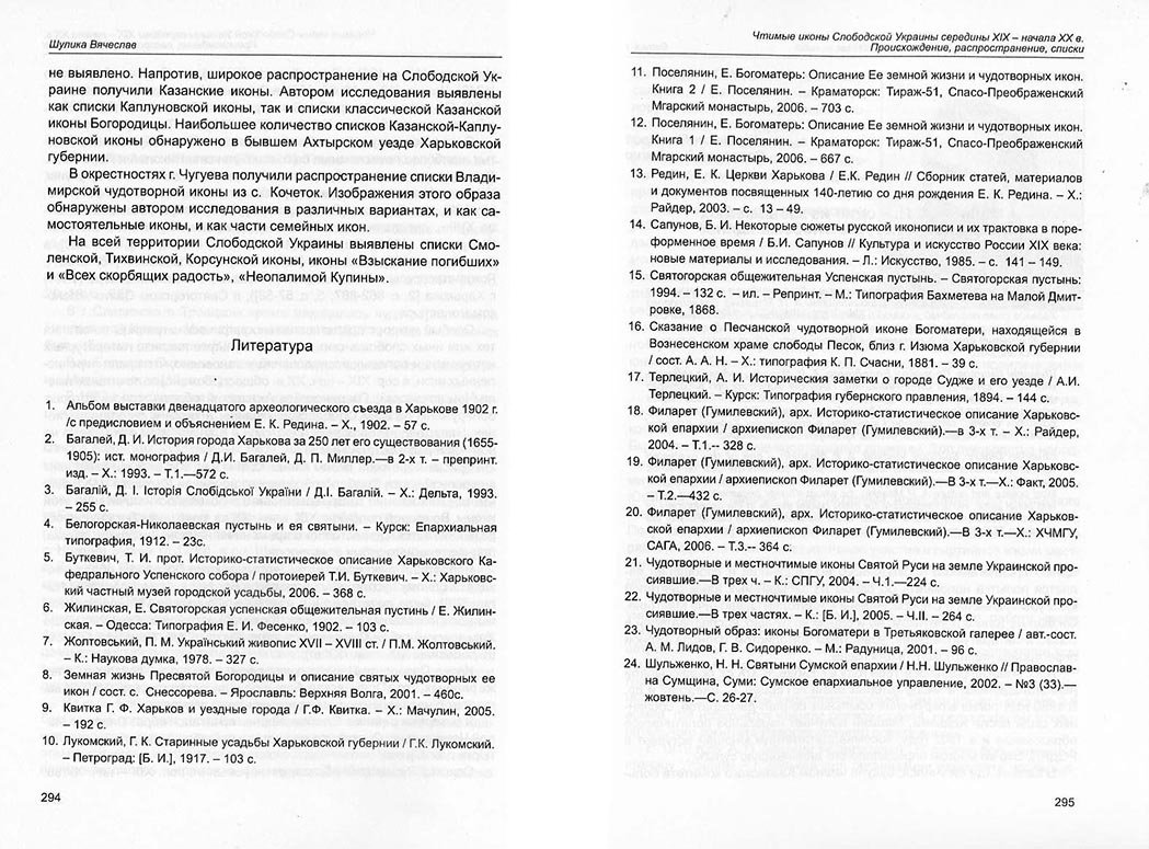 | Бібліографія: | Шуліка В. В. Чтимые иконы Слободской Украины середины XIX - начала XX в. Происхождение, распространение , списки. Пам'яткознавчі погляди молодих вчених XXI ст.: зб. наук. ст. Випуск I, Харків : Курсор, 2010. C. 288–295 |