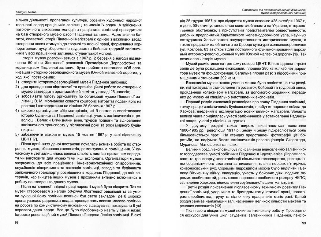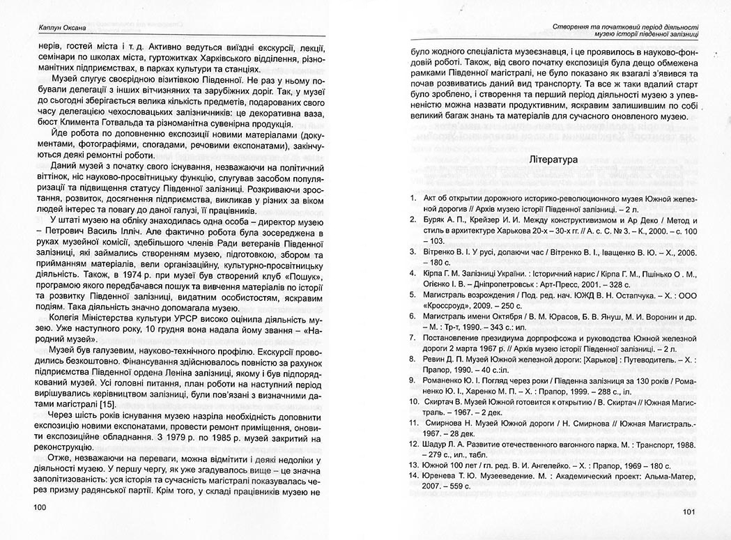 | Бібліографія: | Каплун О. О. Створення та початковий період діяльності музею історії південної залізниці. Пам'яткознавчі погляди молодих вчених XXI ст.: зб. наук. ст. Випуск I, Харків : Курсор, 2010. C. 97–101 |