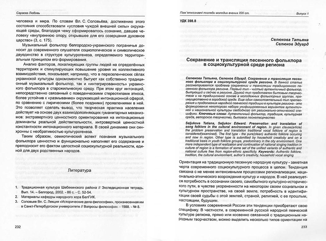 | Назва статті: | Сохранение и трансляция песенного фольклора в социокультурной среде региона |
