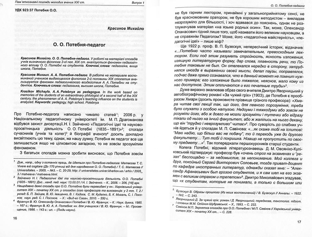 | Бібліографія: | Красіков М. М. О.О. Потебня - педагог. Пам'яткознавчі погляди молодих вчених XXI ст.: зб. наук. ст. Випуск I, Харків : Курсор, 2010. C. 16–21 |