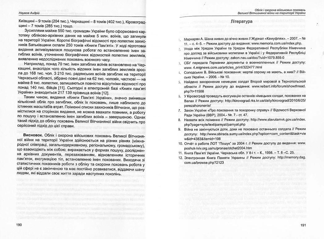 | Назва статті: | Облік і охорона військових поховань Великої Вітчизняної війни на території України |