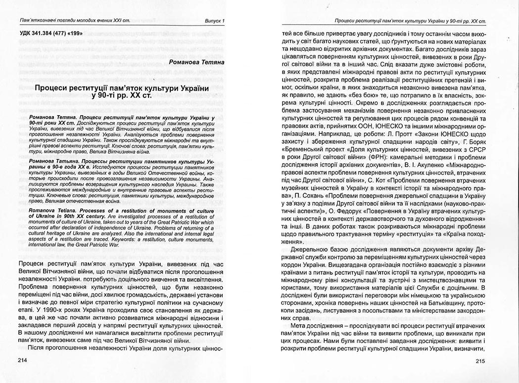 | Назва статті: | Процеси реституції пам'яток культури України у 90-ті рр. XX ст. |