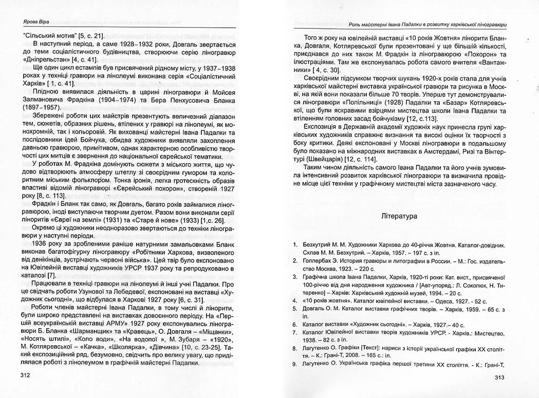 | Бібліографія: | Ярова В. С. Роль майстерні Івана Падалки в розвитку харківської ліногравюри. Пам'яткознавчі погляди молодих вчених XXI ст.: зб. наук. ст. Випуск I, Харків : Курсор, 2010. C. 308–314 |