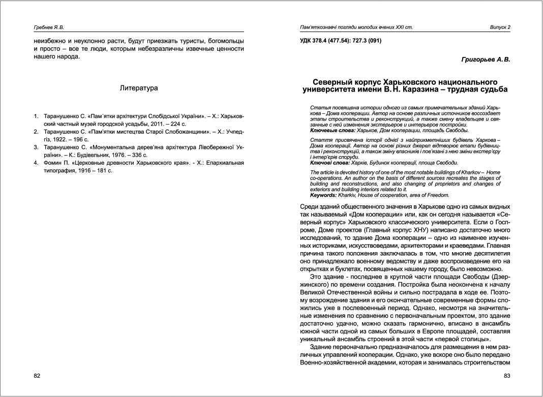 | Назва статті: | Северный корпус Харьковского национального университета имени В.Н. Каразина - трудная судьба |