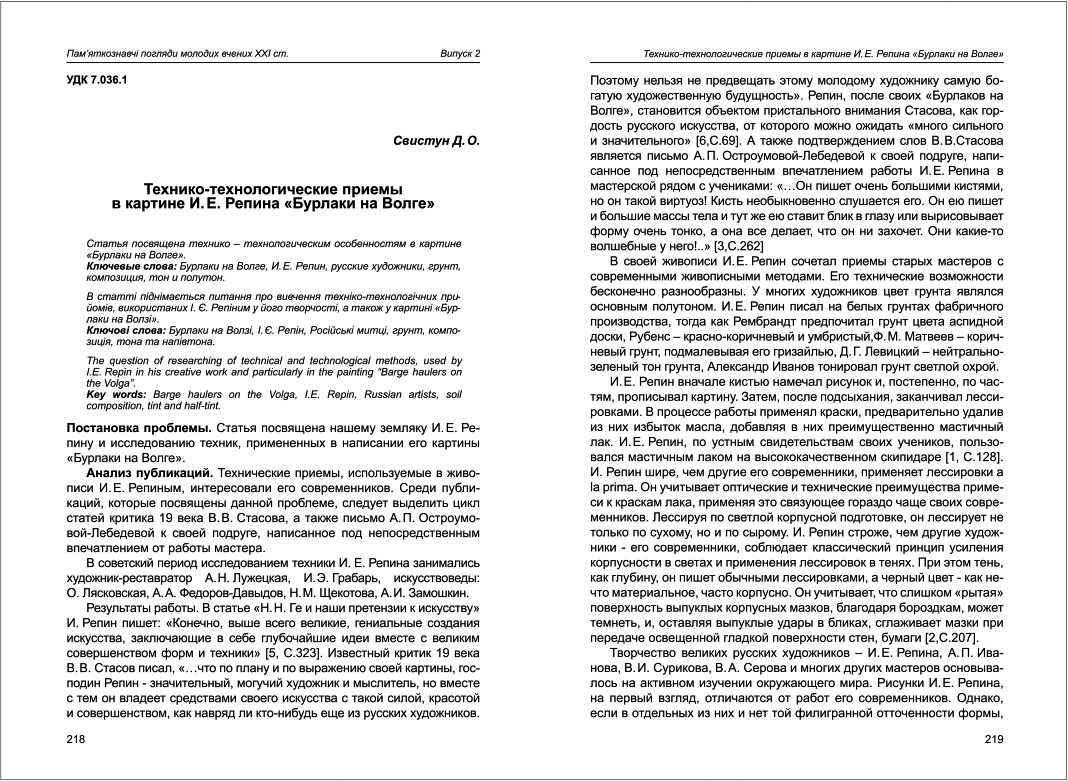 | Назва статті: | Технико-технологические приемы в картине И.Е. Репина "Бурлаки на Волге" |