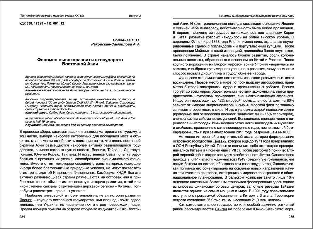 | Бібліографія: | Раковська-Самойлова Г. О., Соловйов В. О. Феномен высокоразвитых государств Восточной Азии. Пам'яткознавчі погляди молодих вчених XXI ст.: зб. наук. ст. Випуск II, Харків : Курсор, 2011. C. 234–237 |