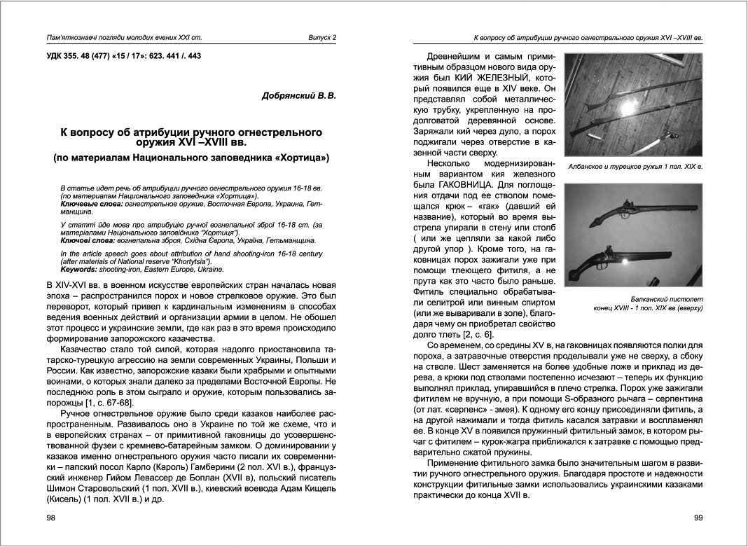 | Назва статті: | К вопросу об атрибуции ручного огнестрельного оружия 16-18 вв (по материалам национального заповедника "Хортица") |
