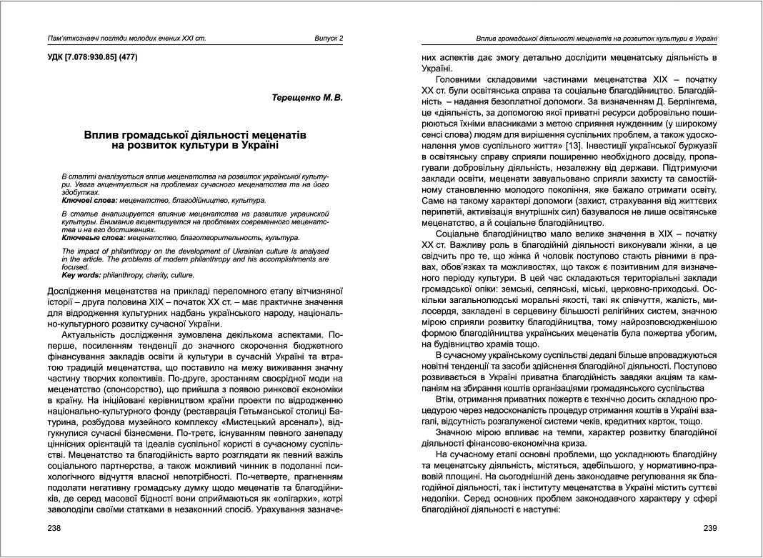 | Назва статті: | Вплив громадської діяльності меценатів на розвиток культури в Україні |
