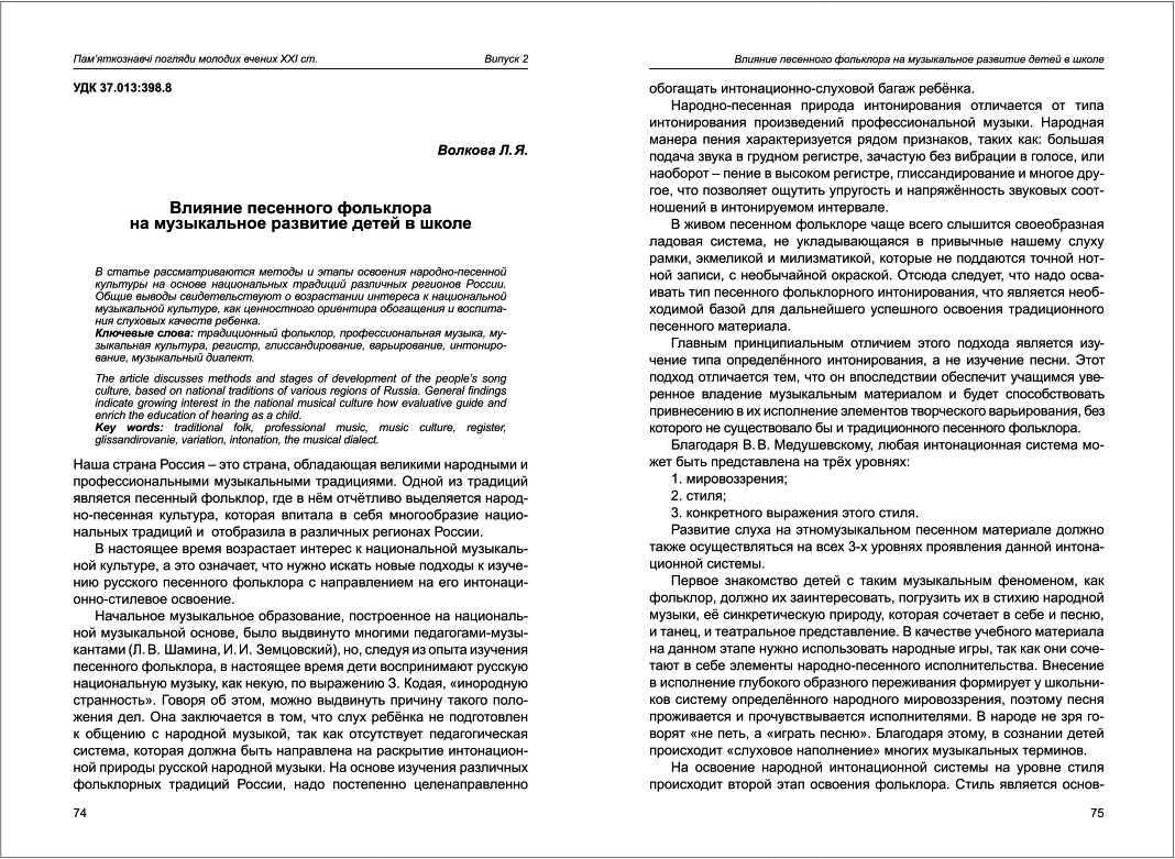 | Назва статті: | Влияние песенного фольклора на музыкальное развитие детей в школе |