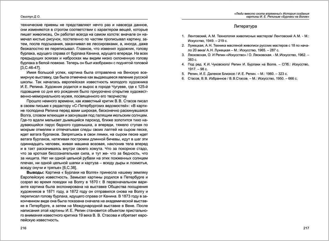 | Бібліографія: | Свистун Д. О. «Люди вместо скота впряжены!» История создания картины И.Е. Репиным "Бурлаки на Волге". Пам'яткознавчі погляди молодих вчених XXI ст.: зб. наук. ст. Випуск II, Харків : Курсор, 2011. C. 213–217 |