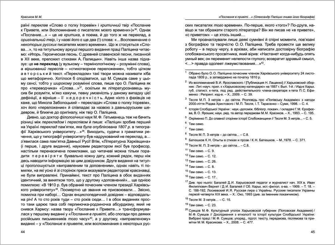 | Бібліографія: | Красіков М. М. «Послання в привіті...» (Олександр Паліцин очима його біографів). Пам'яткознавчі погляди молодих вчених XXI ст.: зб. наук. ст. Випуск II, Харків : Курсор, 2011. C. 40–46 |