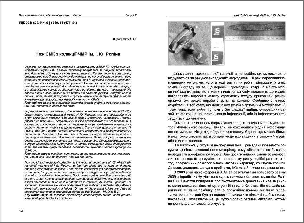 | Назва статті: | Нож СМК з колекції ЧМР ім. І.Ю. Рєпіна |