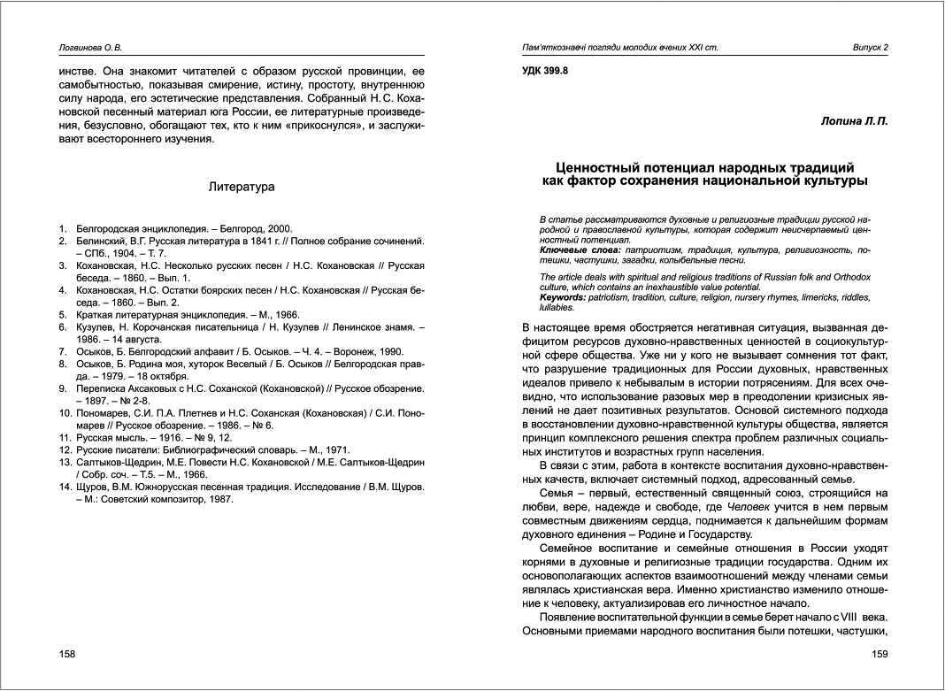 | Бібліографія: | Лопіна Л. П. Ценностный потенциал народных традиций как фактор сохранения национальной культуры. Пам'яткознавчі погляди молодих вчених XXI ст.: зб. наук. ст. Випуск II, Харків : Курсор, 2011. C. 159–161 |