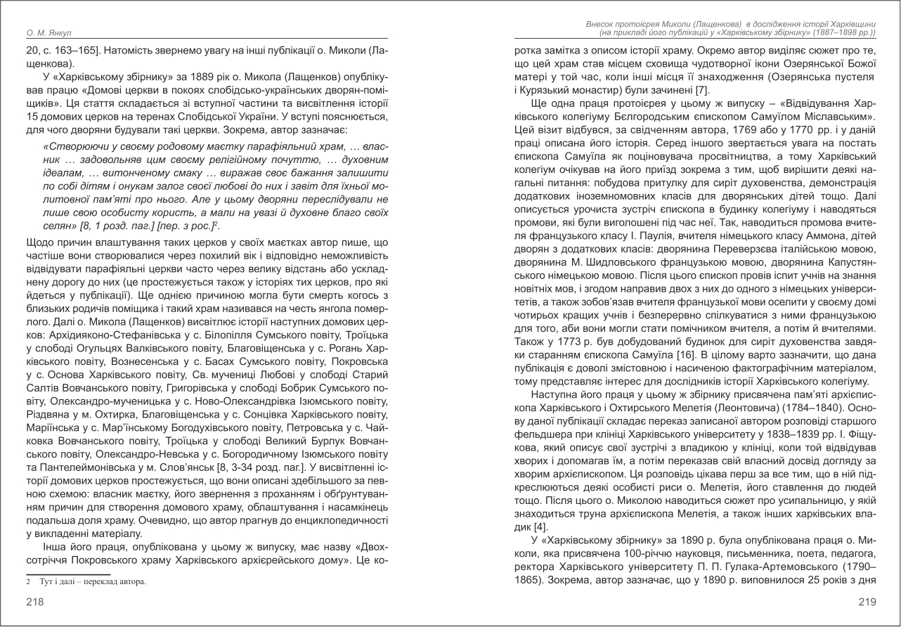 | Назва статті: | Внесок протоієрея Миколи (Лащенкова) в дослідження історії Харківщини (на прикладі його публікацій у «Харківському збірнику» (1887–1898 рр.)) |