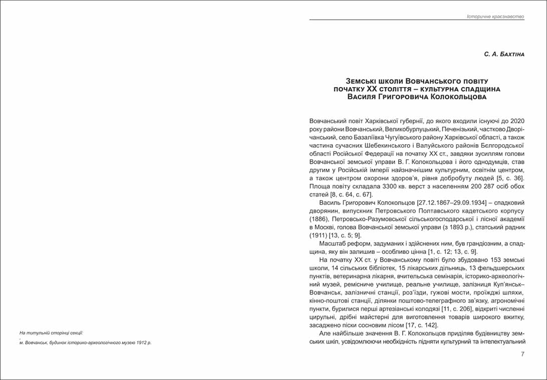 | Назва статті: | Земські школи Вовчанського повіту початку ХХ століття – культурна спадщина Василя Григоровича Колокольцова |