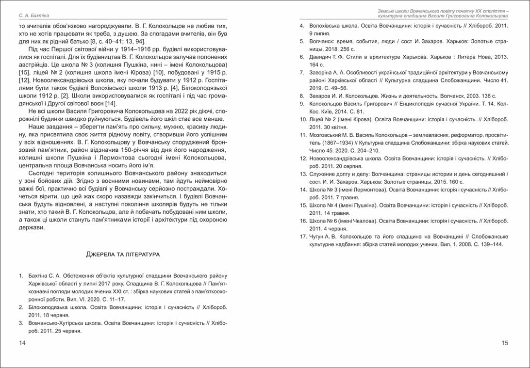 | Бібліографія: | Бахтіна С. А. Земські школи Вовчанського повіту початку ХХ століття – культурна спадщина Василя Григоровича Колокольцова. Культурна спадщина Слобожанщини: зб. наук. ст. Число 56, Харків : Курсор, 2024. C. 7–15 , іл. |