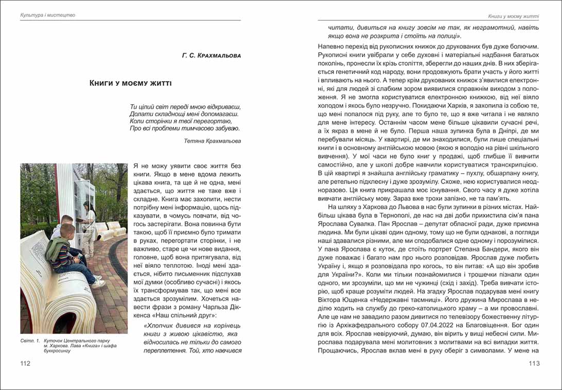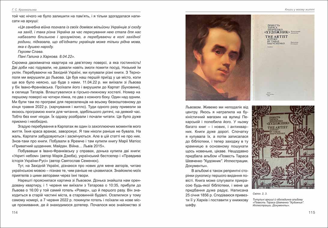 | Бібліографія: | Крахмальова Г. С. Книги у моєму житті. Культурна спадщина Слобожанщини: зб. наук. ст. Число 56, Харків : Курсор, 2024. C. 112–126 , іл. |