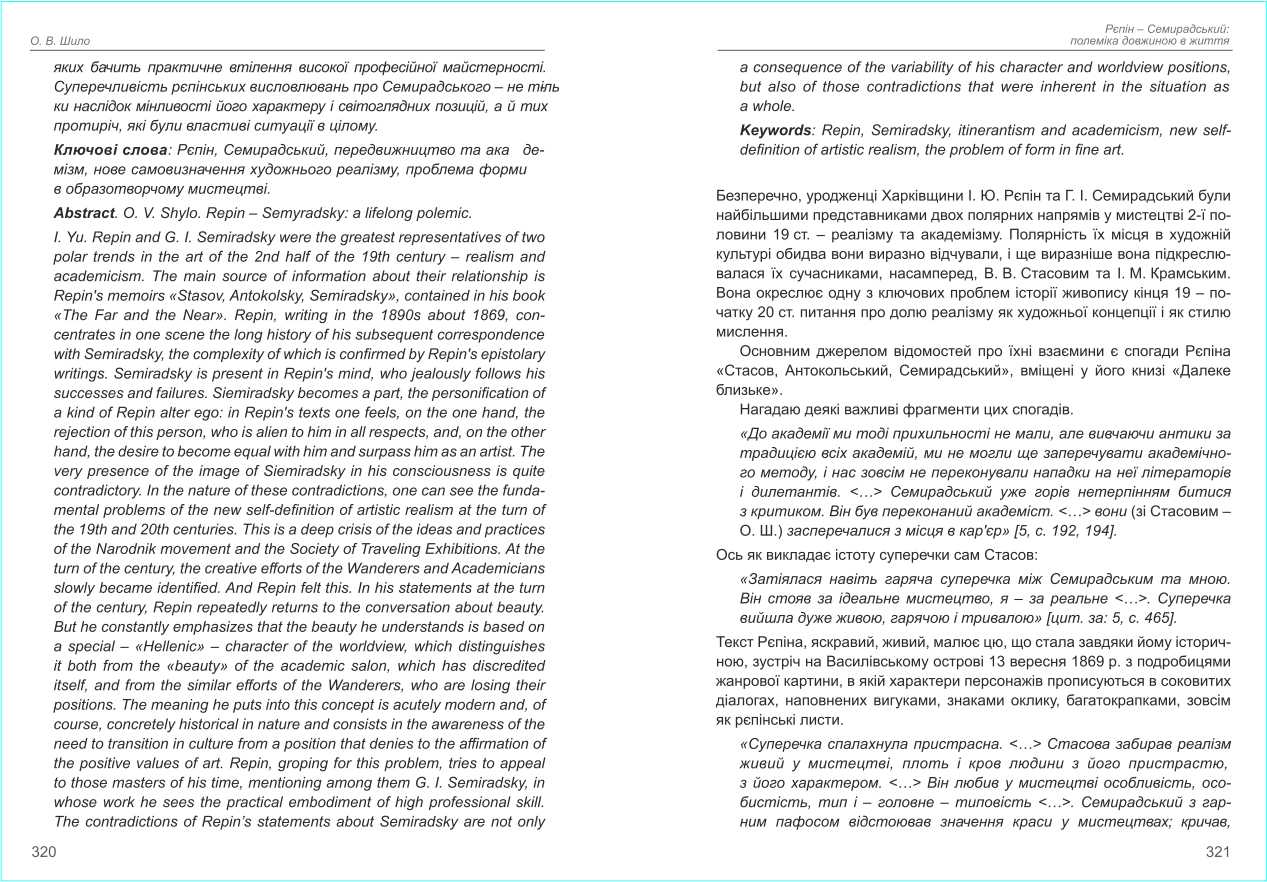 | Назва статті: | Рєпін – Семирадський: полеміка довжиною в життя |