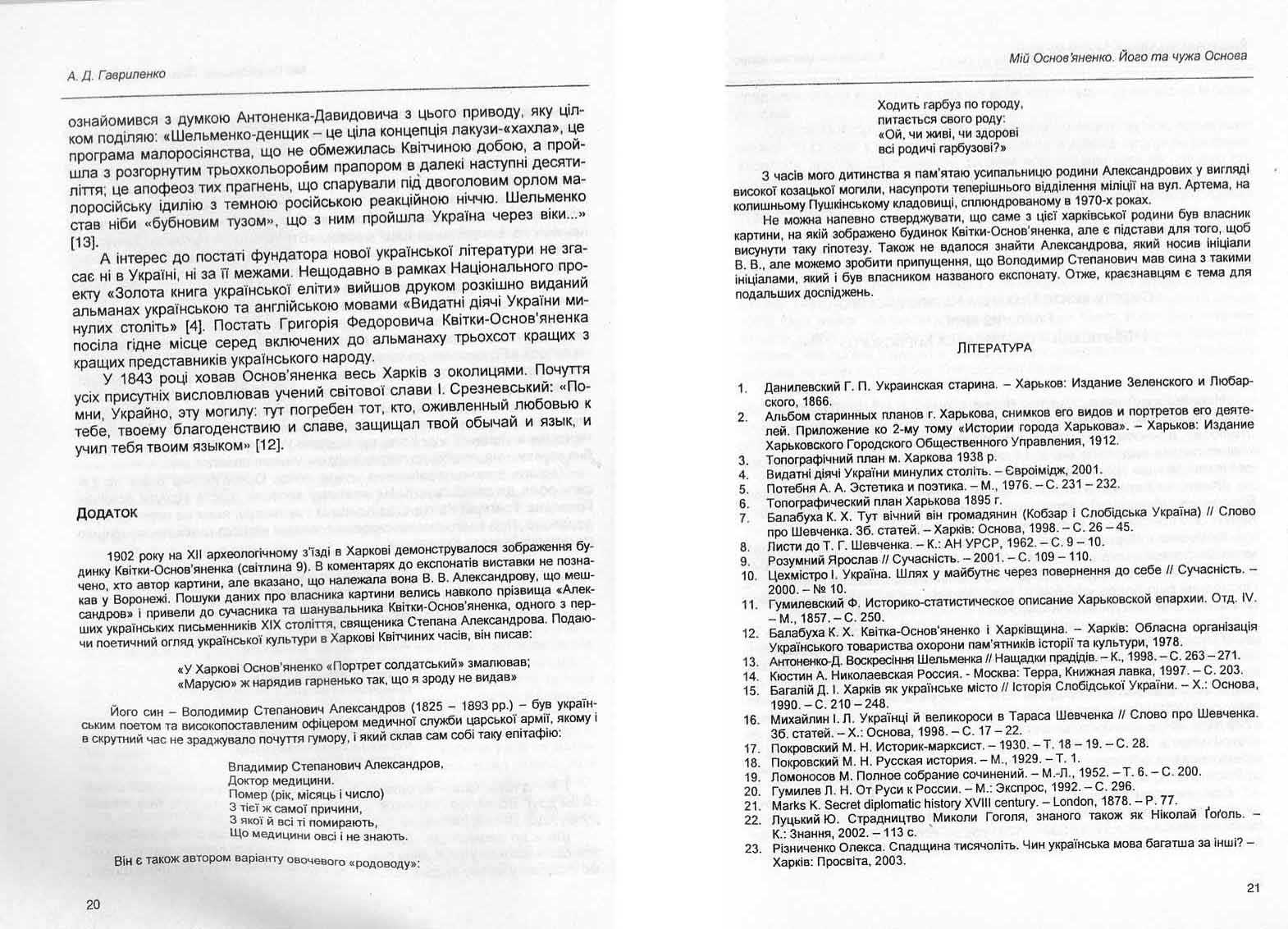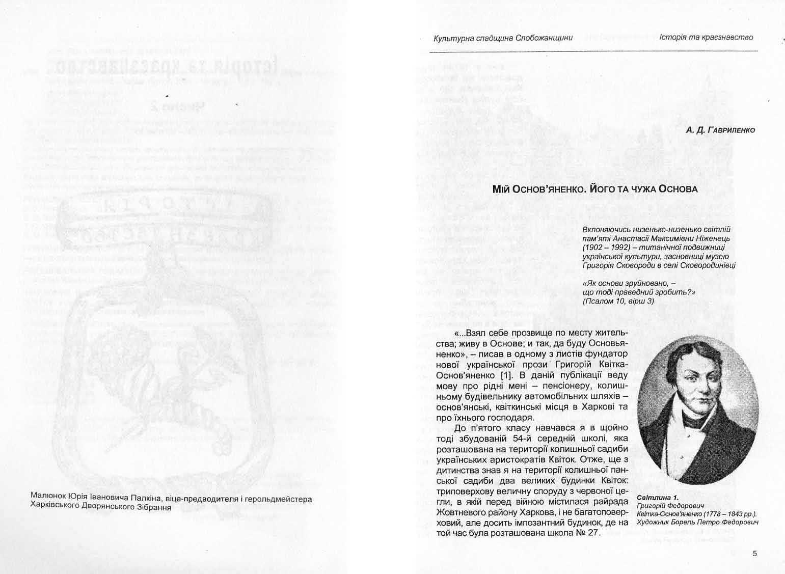 Гавриленко А. Д. Мій Основ'яненко. Його та чужа Основа