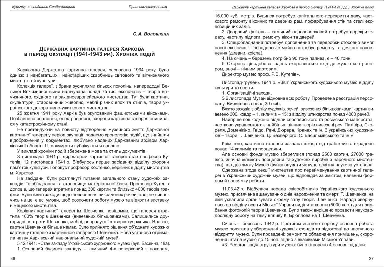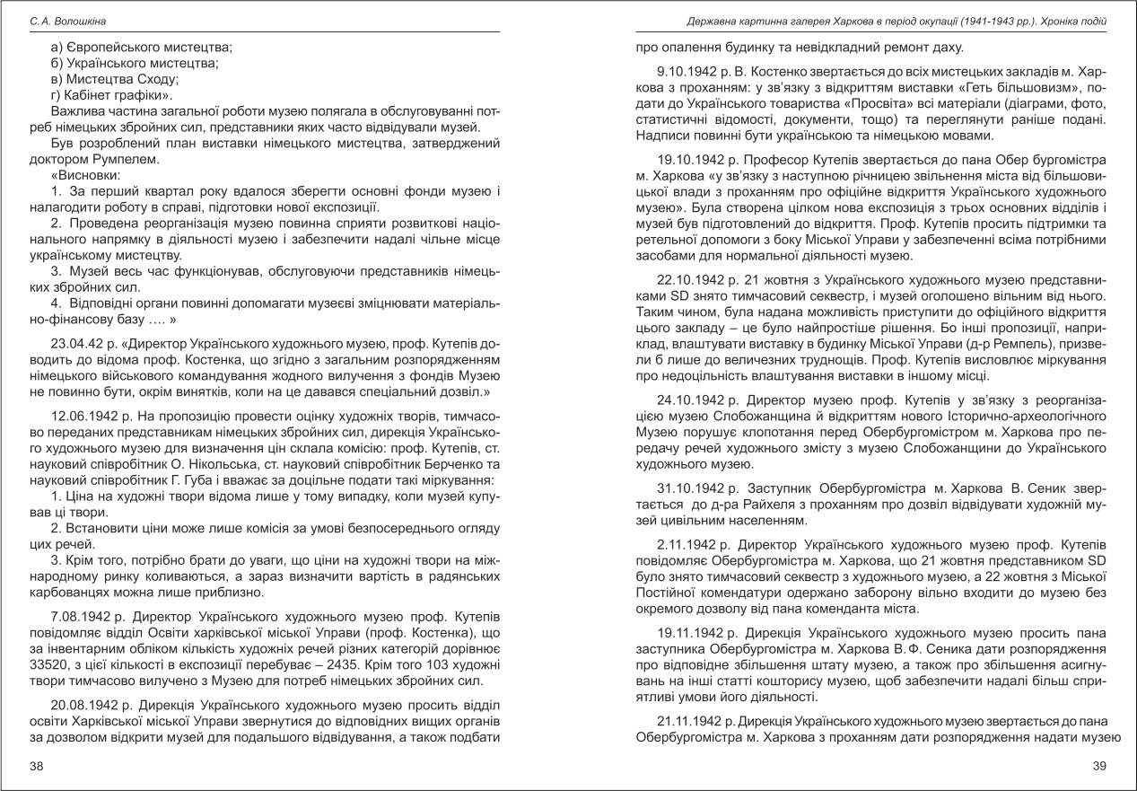 Волошкіна: Державна картинна галерея Харкова в період окупації (1941-1943 рр.). Хроніка подій