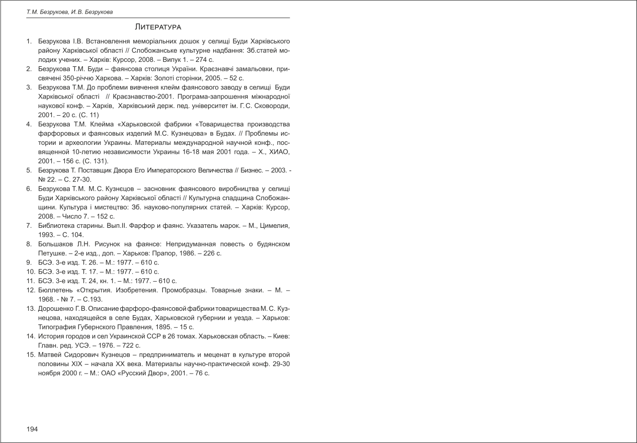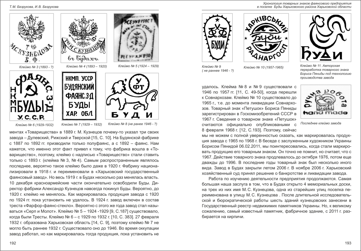 Безрукова, Безрукова: Хронология товарных знаков фаянсового предприятия в поселке Буды Харьковского района ...