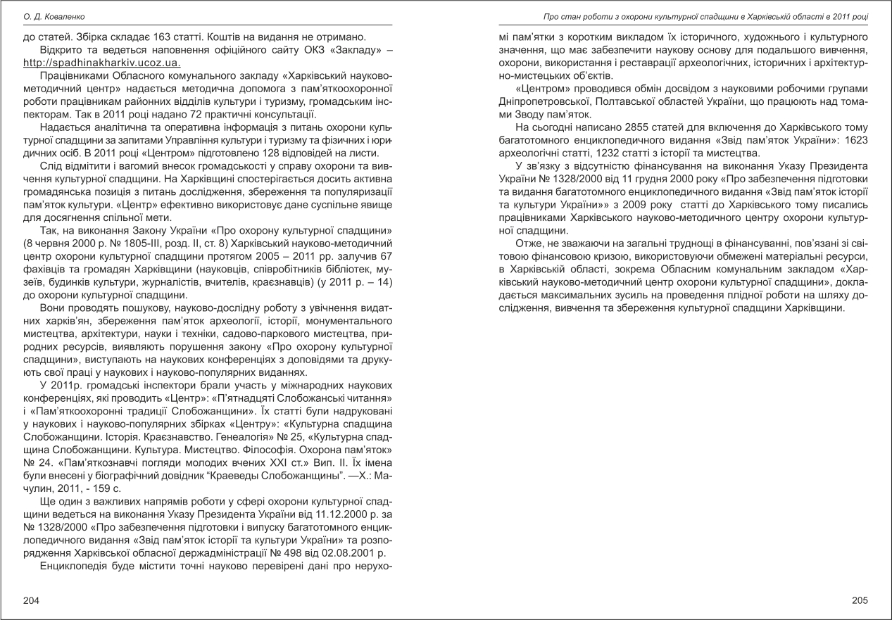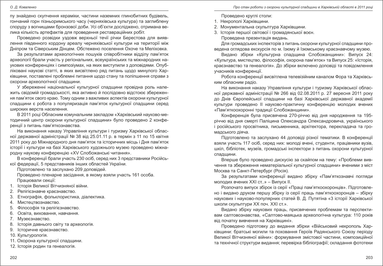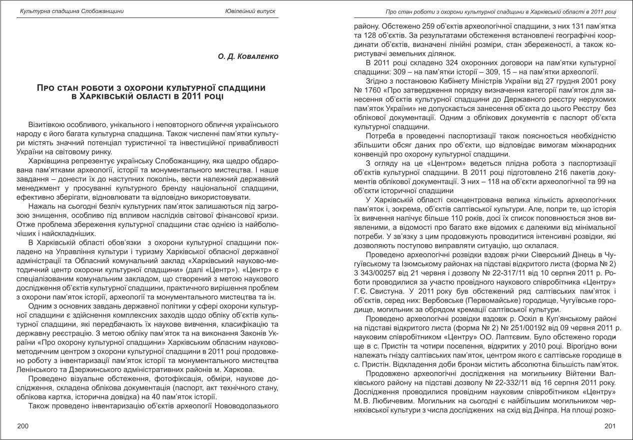 Коваленко: Про стан роботи з охорони культурної спадщини в Харківській області в 2011 році