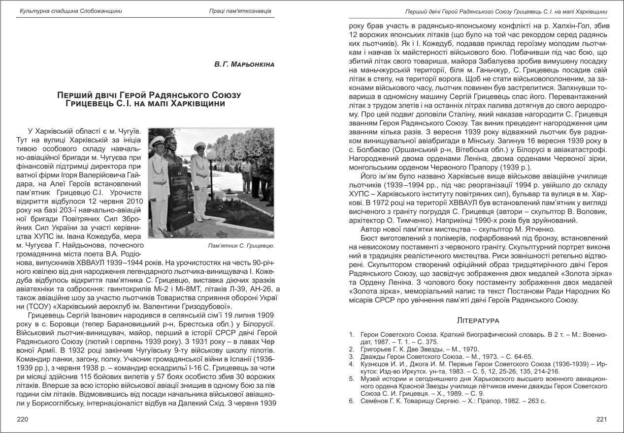 Марьонкіна: Перший двічі Герой Радянського Союзу Грицевець С.І. на мапі Харківщини