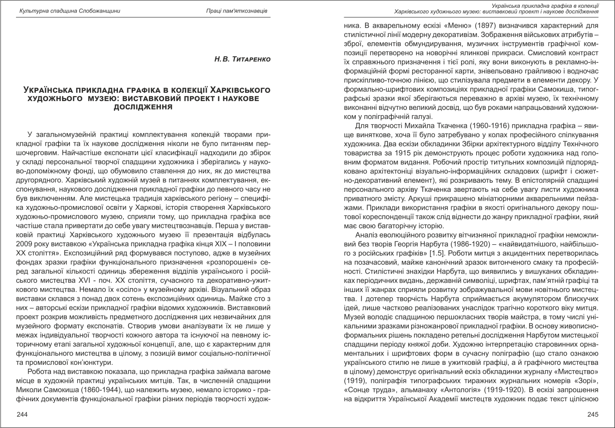 Титаренко: Українська прикладна графіка в колекції Харківського художнього музею: виставковий проект ...