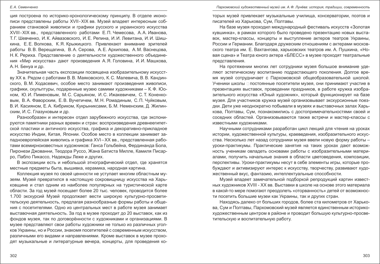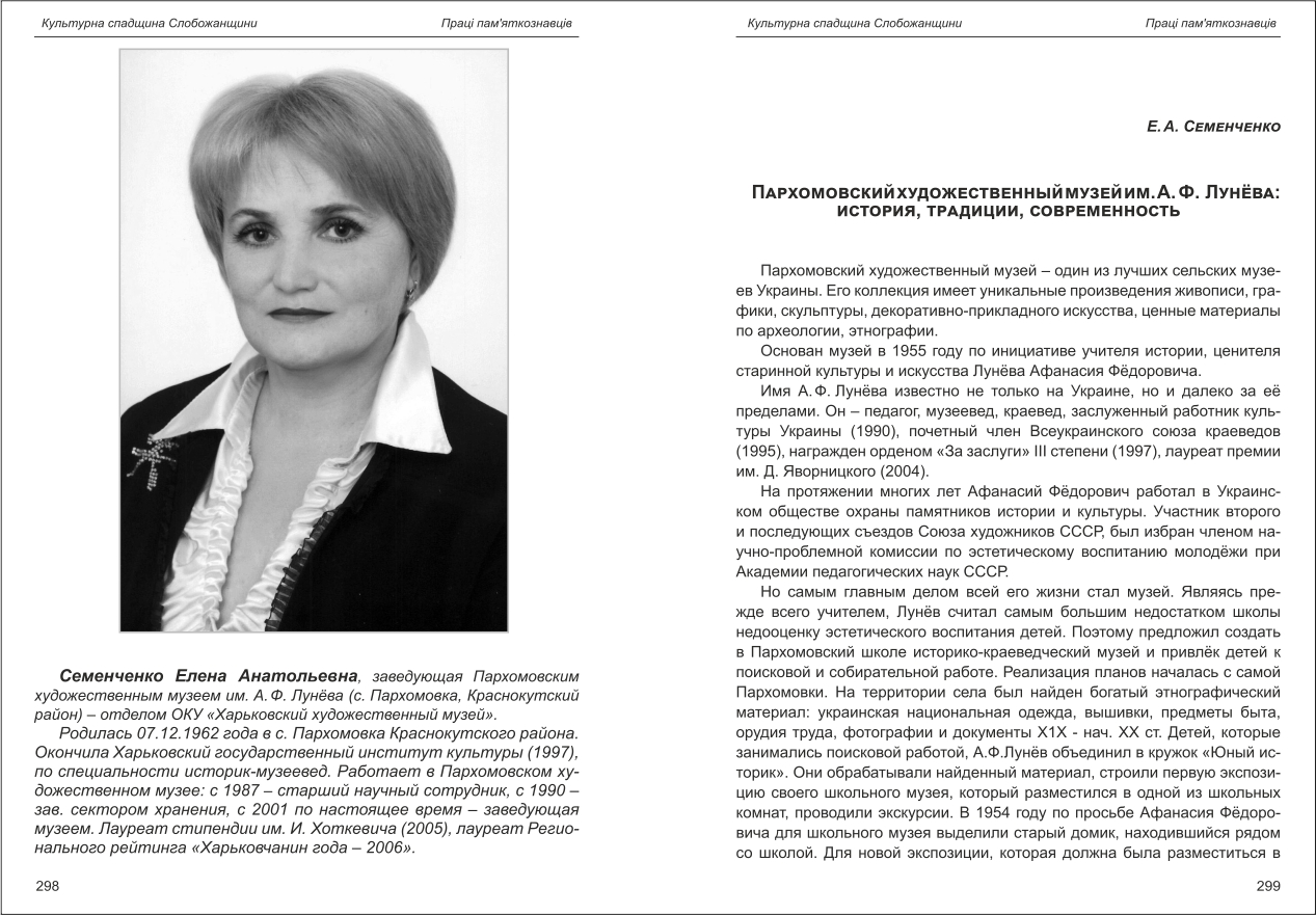 Семенченко: Пархомовский художественный музей им. А.Ф. Лунёва: истории, традиции, современность