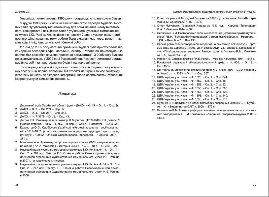 Бучаста С. І. Будівля торгових лавок військового поселення XIX сторіччя в Чугуєві: історія будівництва та існування