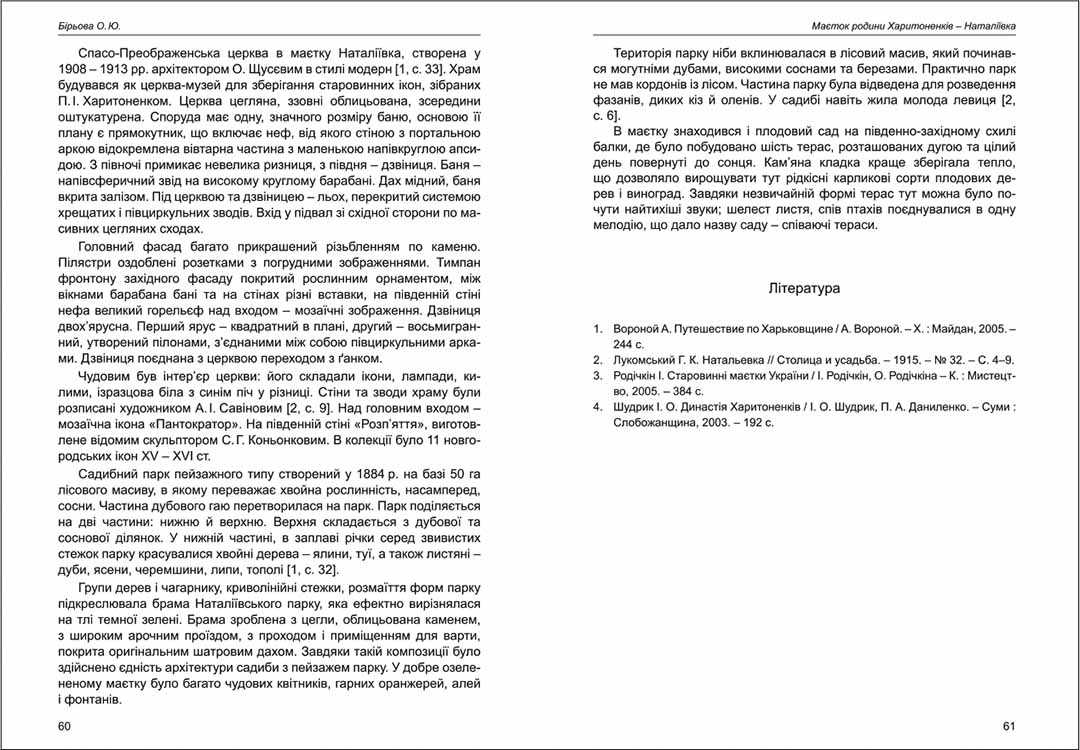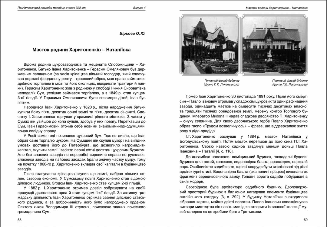 Бірьова О. Ю. Маєток родини Харитоненків - Наталіївка