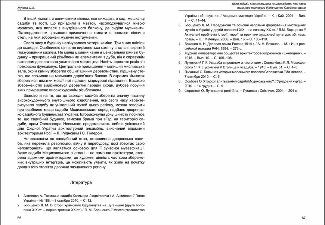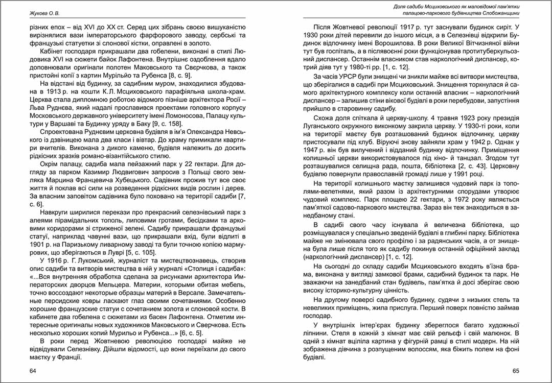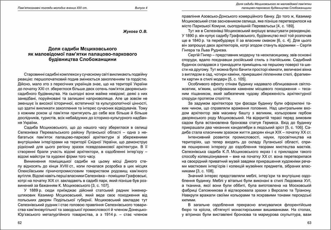 Жукова О. Я. Доля садиби Мсциховського як маловідомої пам'ятки палацово-паркового будівництва Слобожанщини