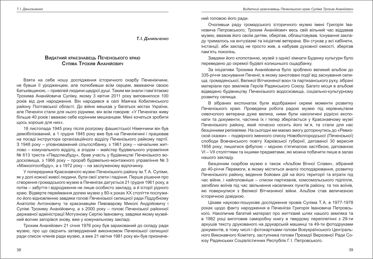 Данильченко: Видатний краєзнавець Печенізького краю Суліма Трохим Ананійович