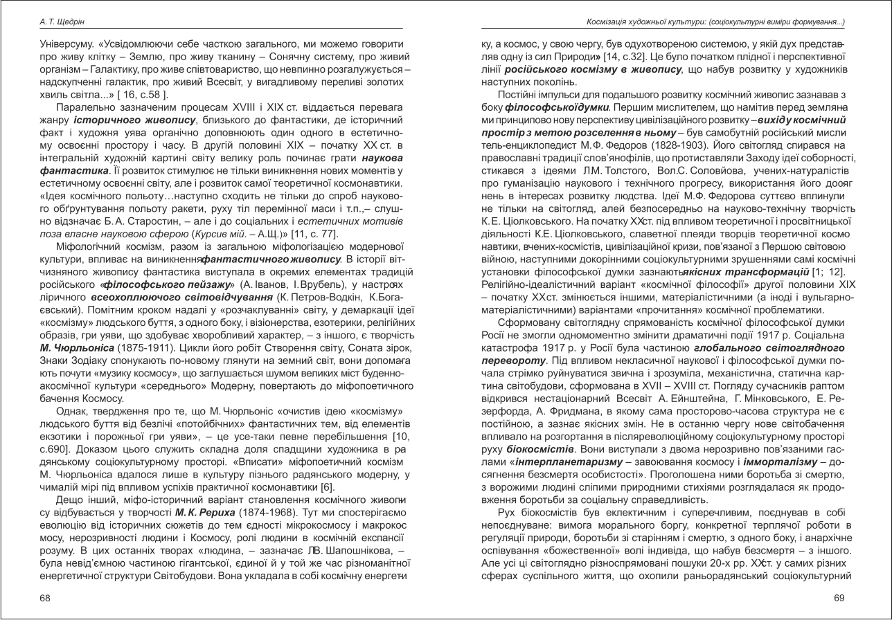 Щедрін: Космізація художньої культури: (соціокультурні виміри формування вітчизняного космічного ...