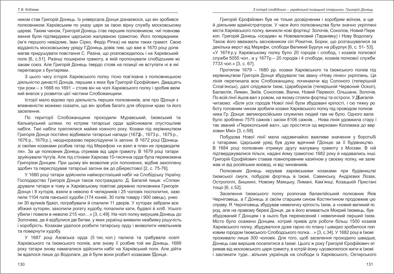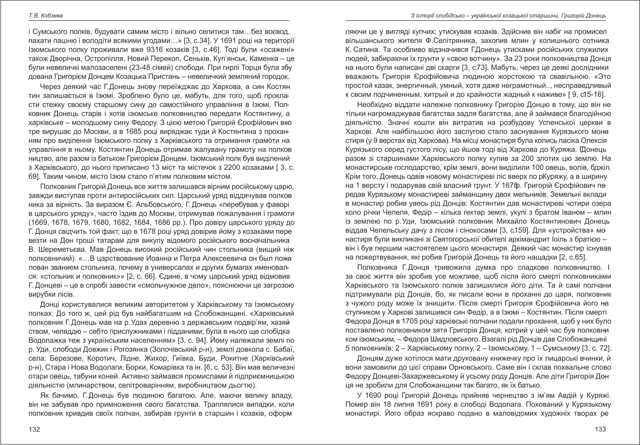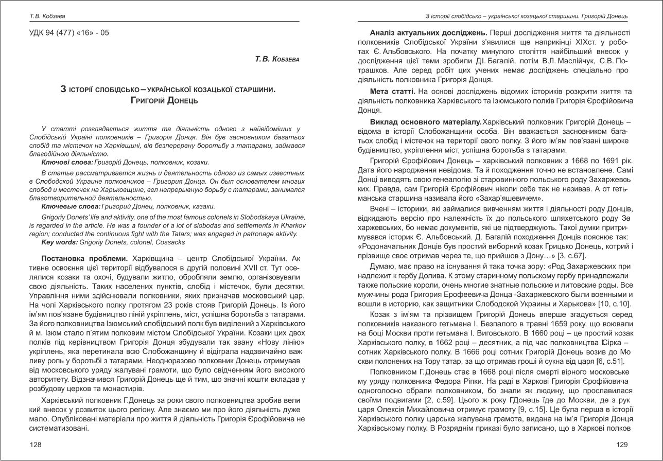 Кобзєва: З історії слобідсько-української козацької старшини. Григорій Донець