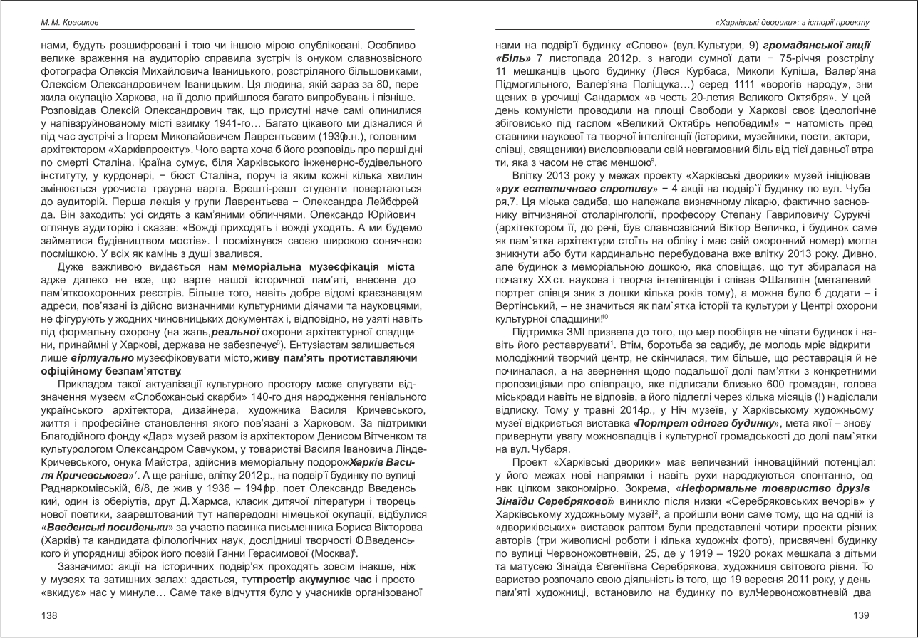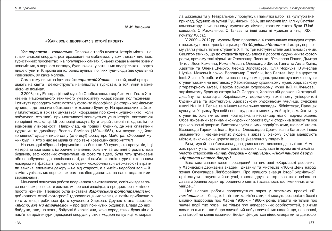 Красіков: «Харківські дворики»: з історії проекту