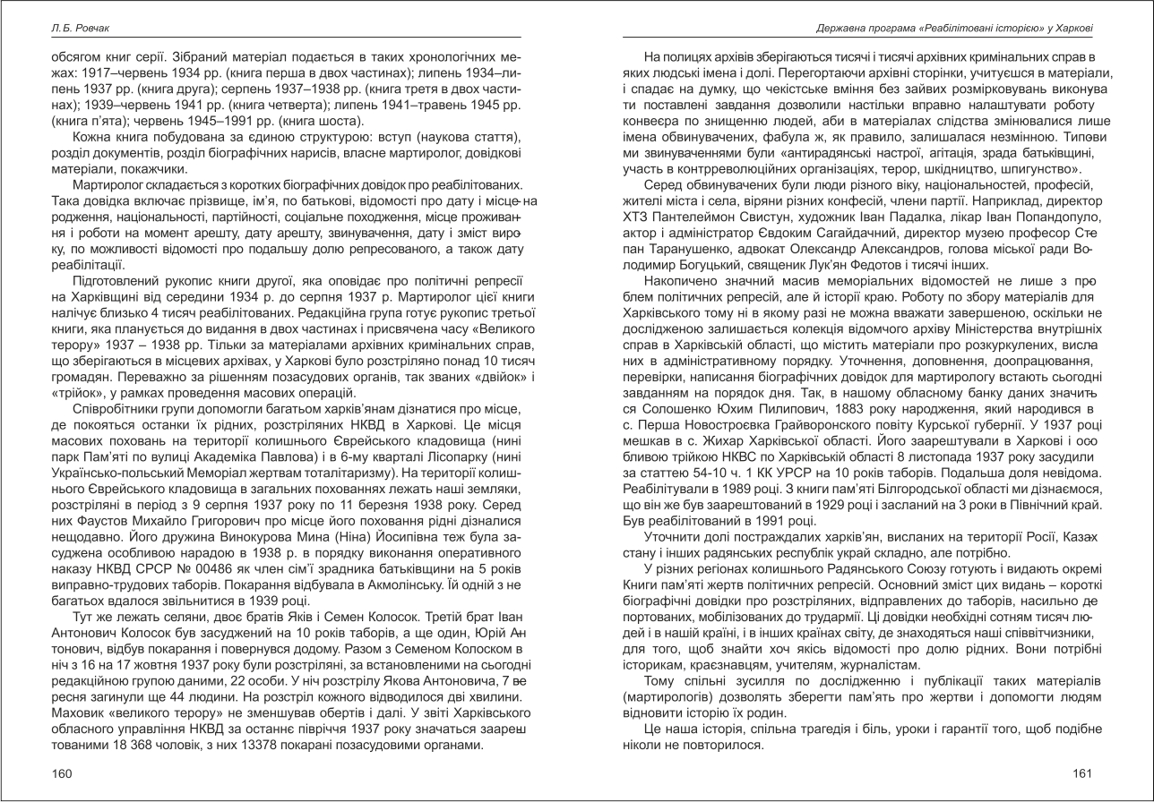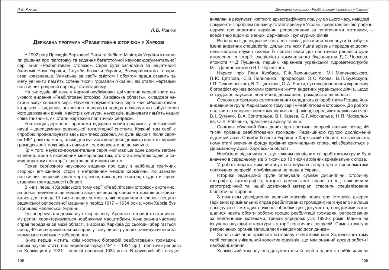 Ровчак: Державна програма "Реабілітовані історією" у Харкові