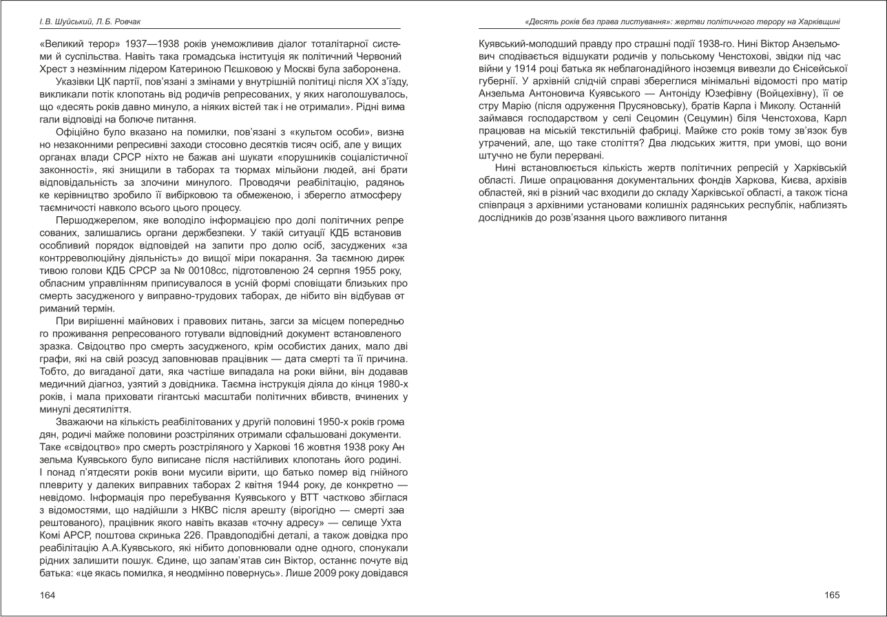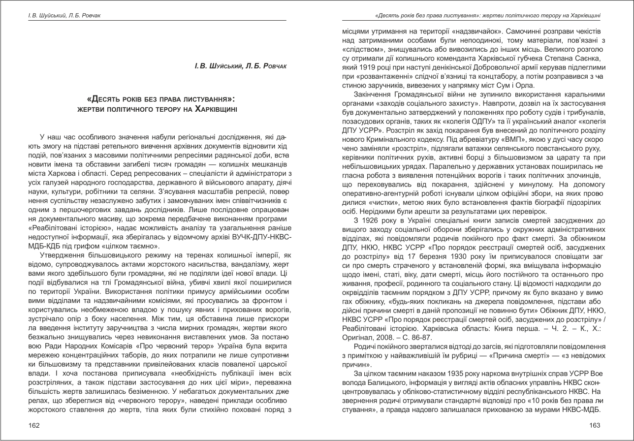 Ровчак, Шуйський: «Десять років без права листування»: жертви політичного терору на Харківщині
