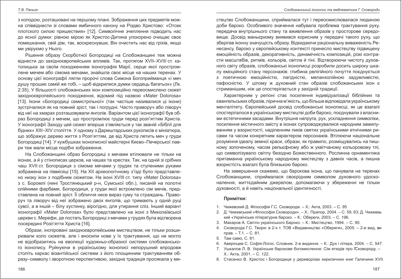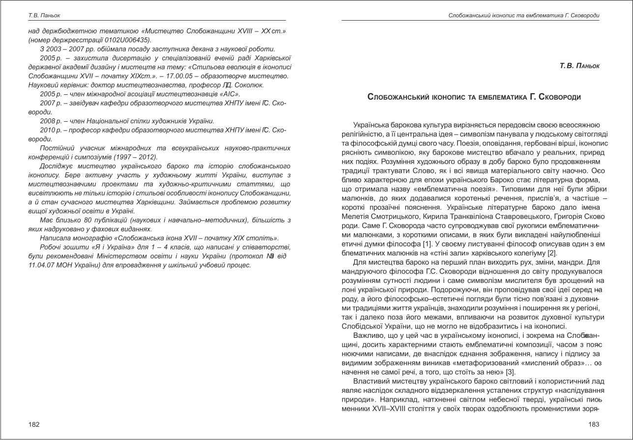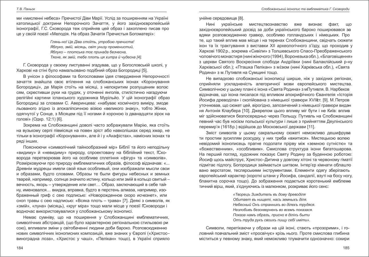 Паньок: Слобожанський іконопис та емблематика Г. Сковороди