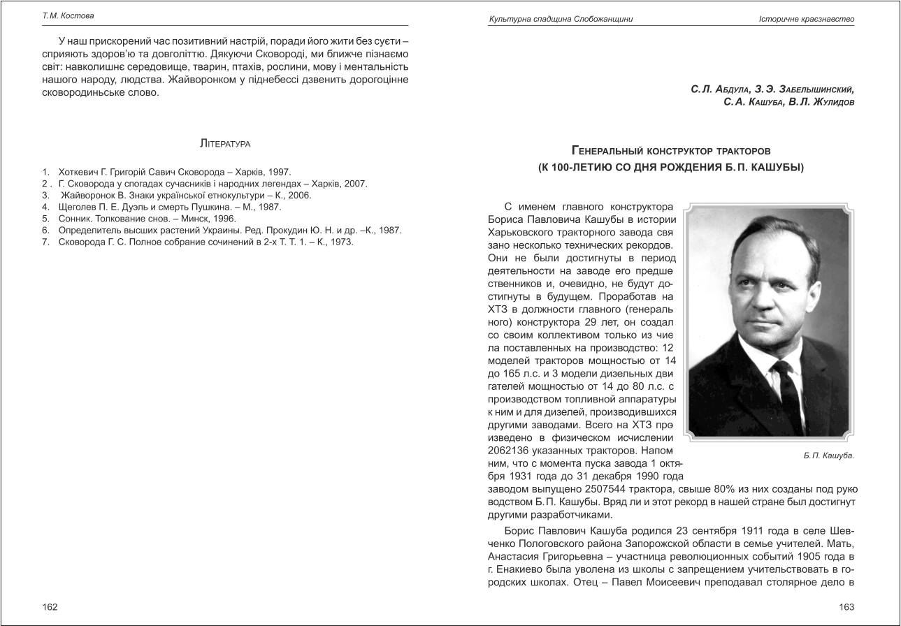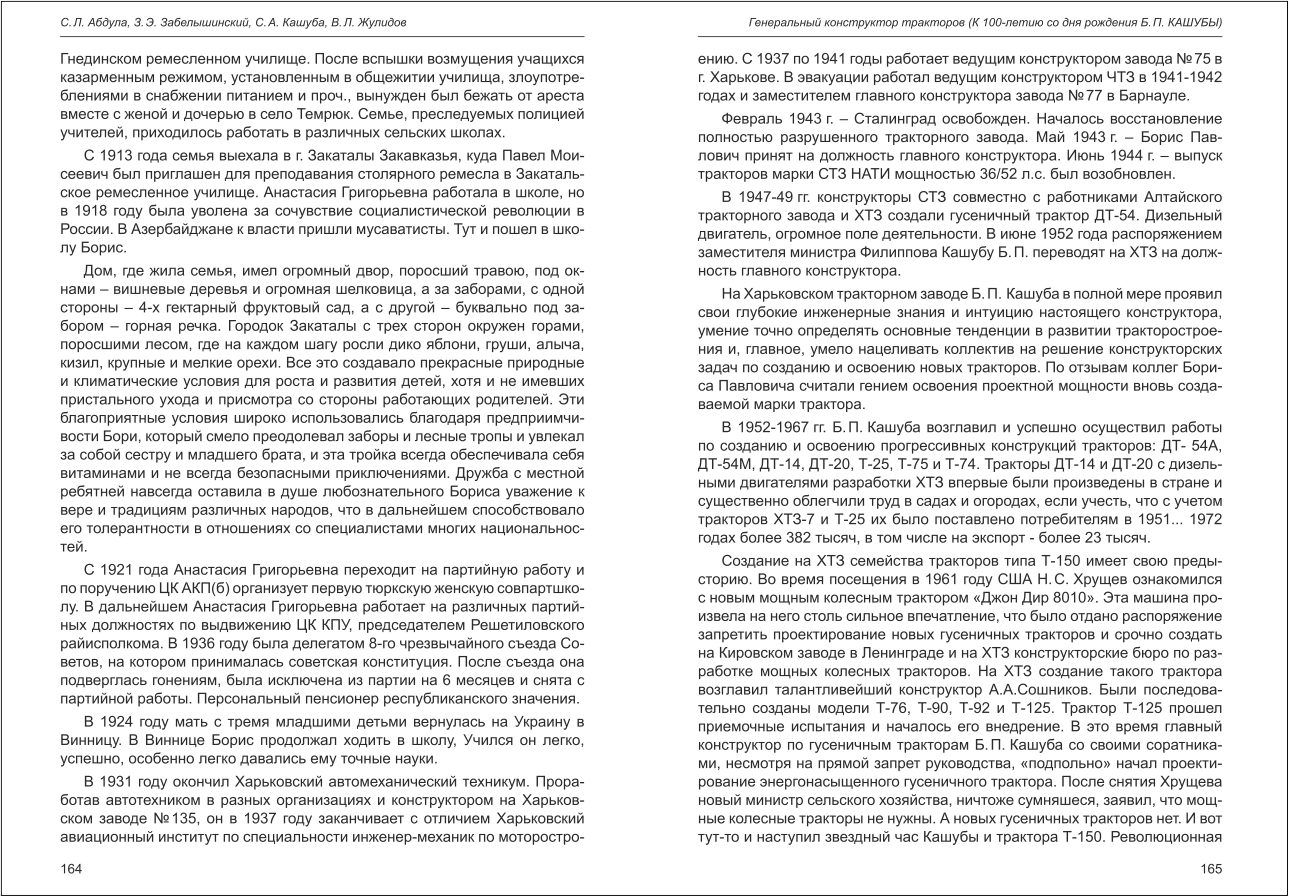 Абдула С. Л., Жулідов В. Л., Забелишинський З. Е., Кашуба С. А. Генеральный конструктор тракторов (К 100-летию со дня рождения Б.П. Кашубы)