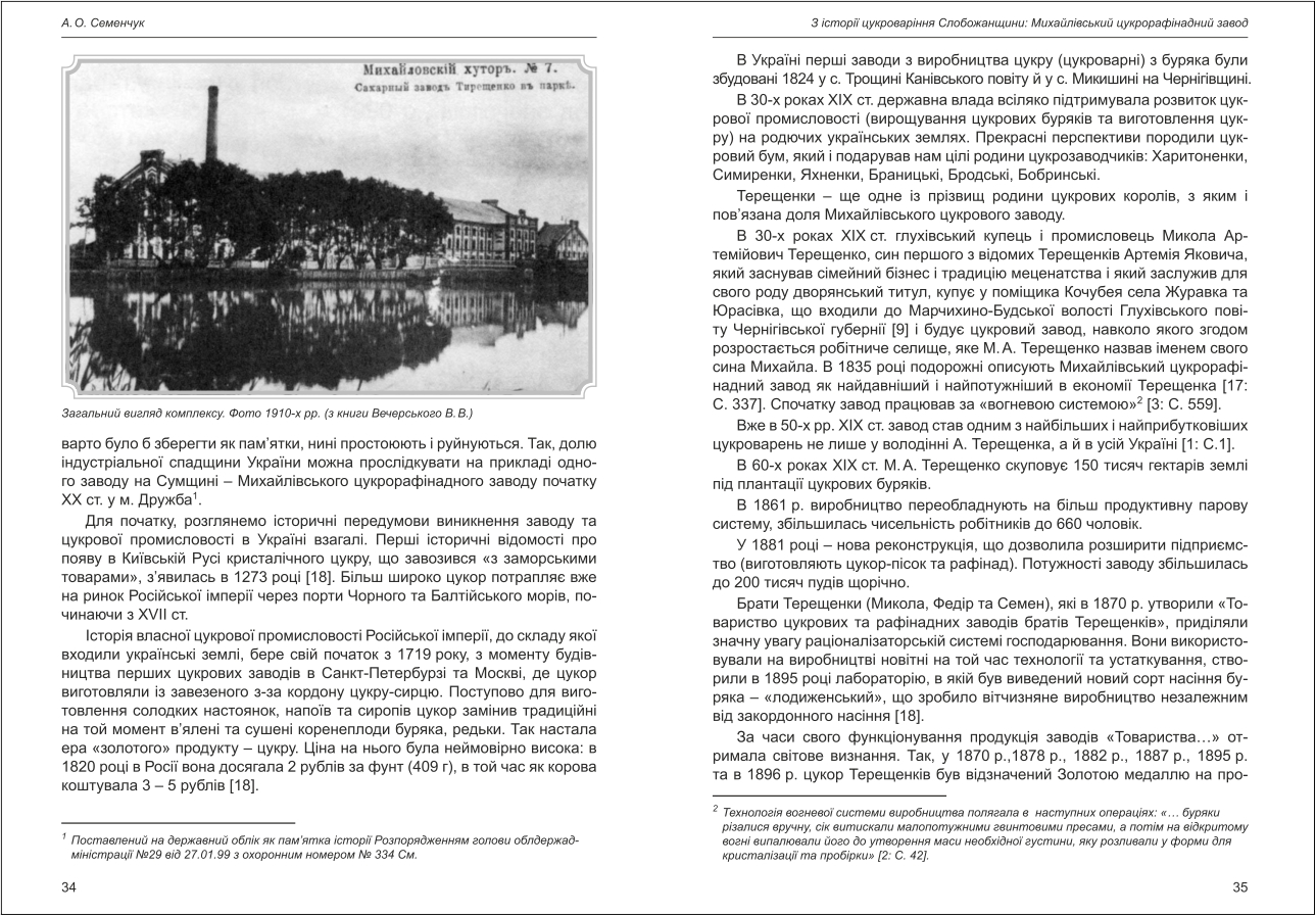 Семенчук А. О. З історії цукроваріння Слобожанщини: Михайлівський цукрорафінадний завод