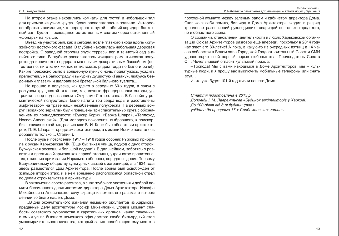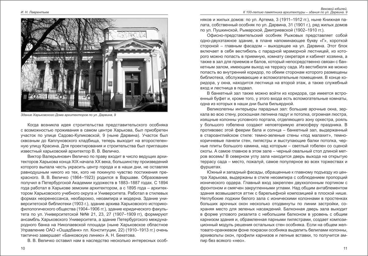Лаврентьєв І. М. Вековой юбилей. К 100-летию памятника архитектуры - здания по ул. Дарвина, 9