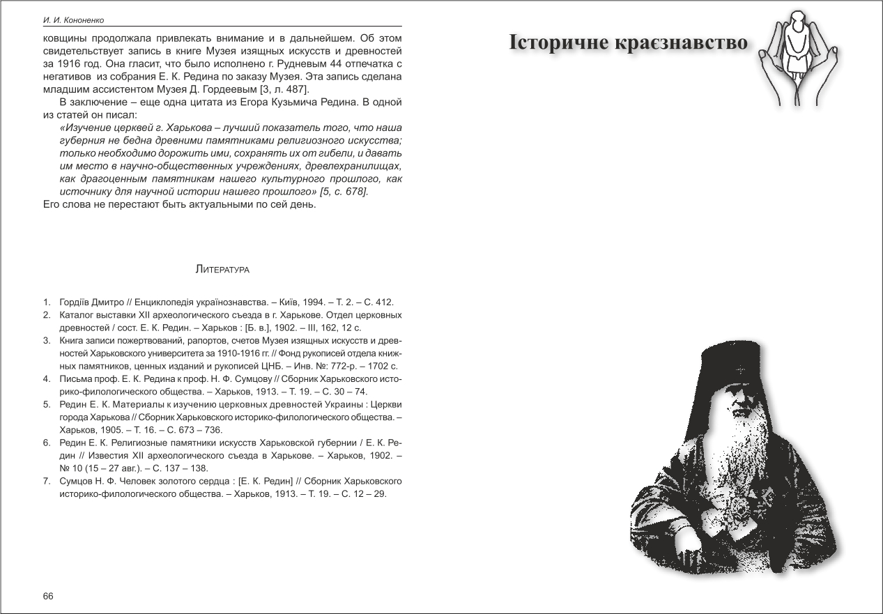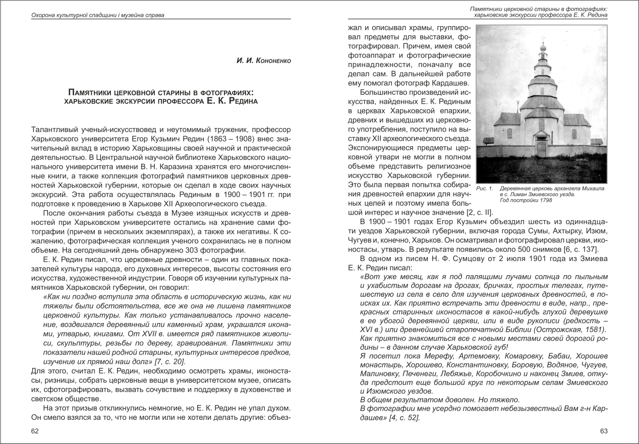 Кононенко І. І. Памятники церковной старины в фотографиях: харьковские экскурсии профессора Е. К. Редина