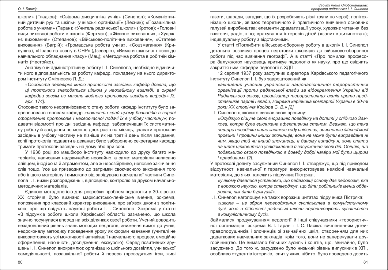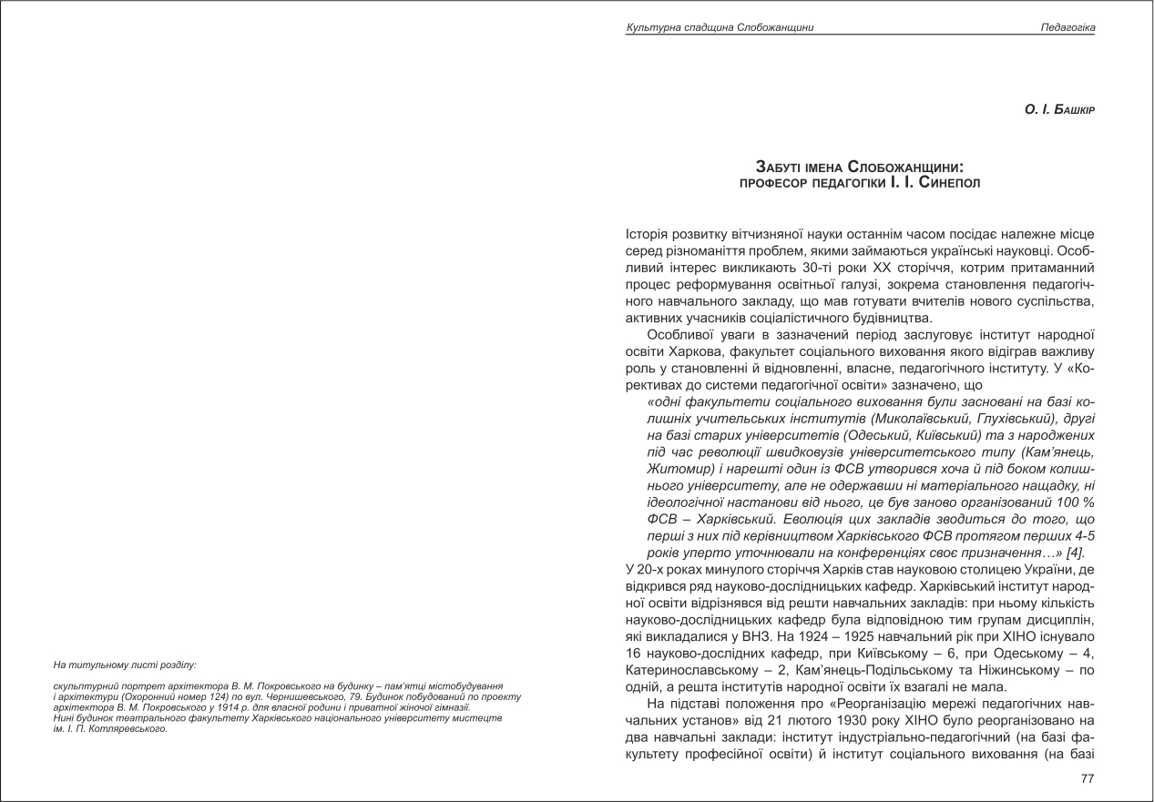 Башкір: Забуті імена Слобожанщини: професор педагогіки І. І. Синепол