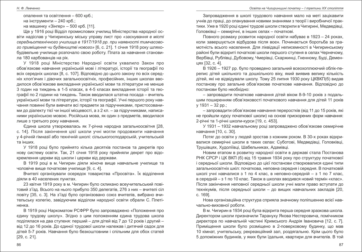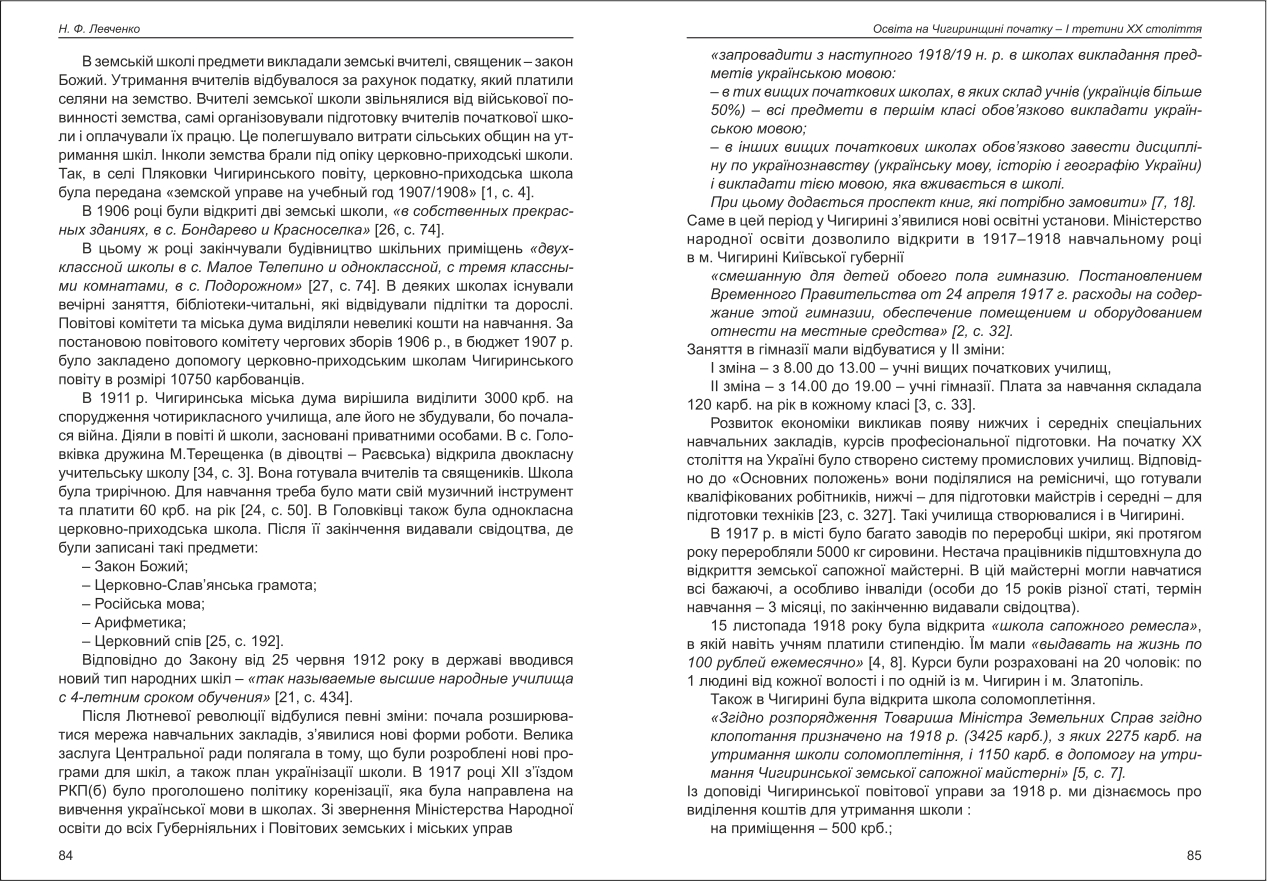 Левченко: Освіта на Чигиринщині початку - І третини ХХ століття