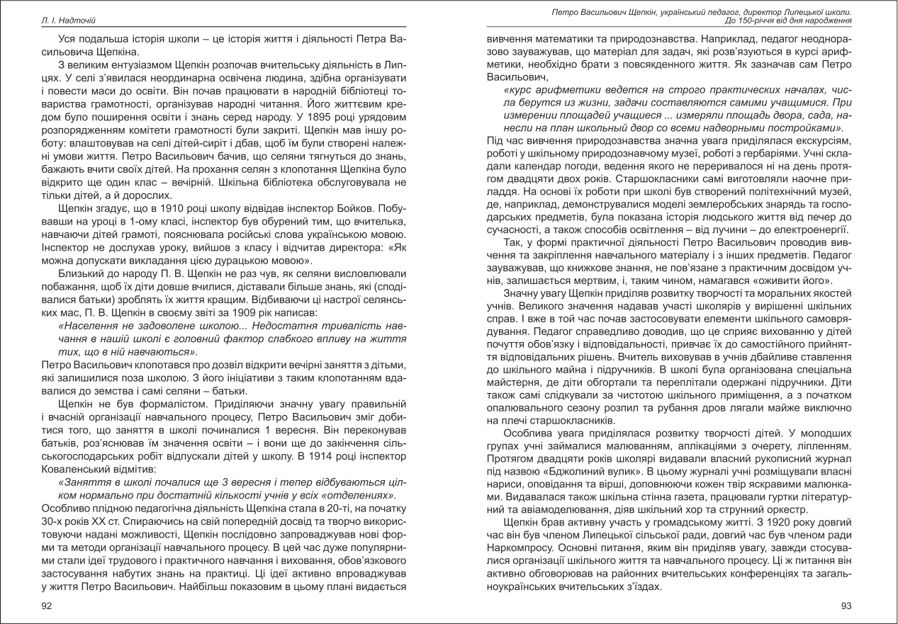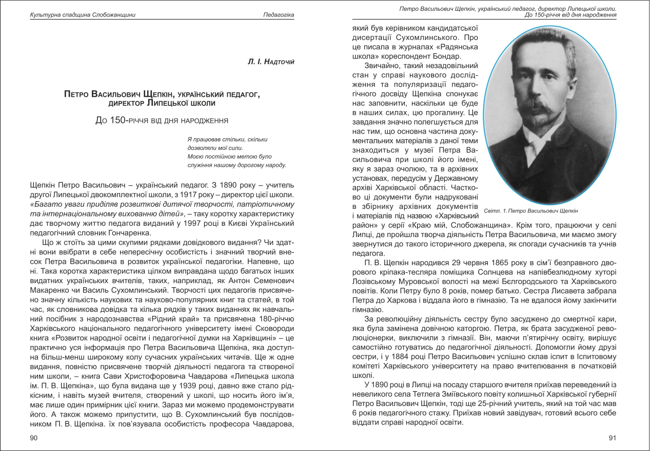 Надточій: Петро Васильович Щепкін, український педагог, директор Липецької школи. До 150-річчя від ...