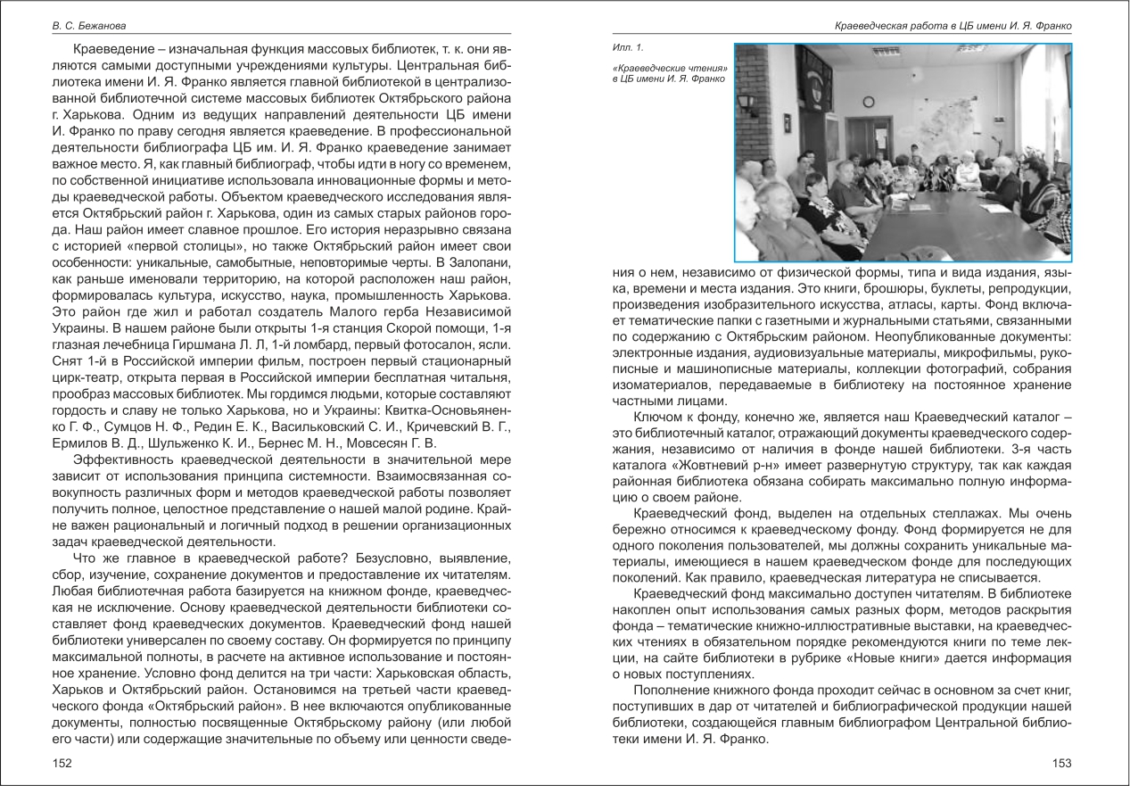 Бежанова: Краеведческая работа в ЦБ имени И. Я. Франко
